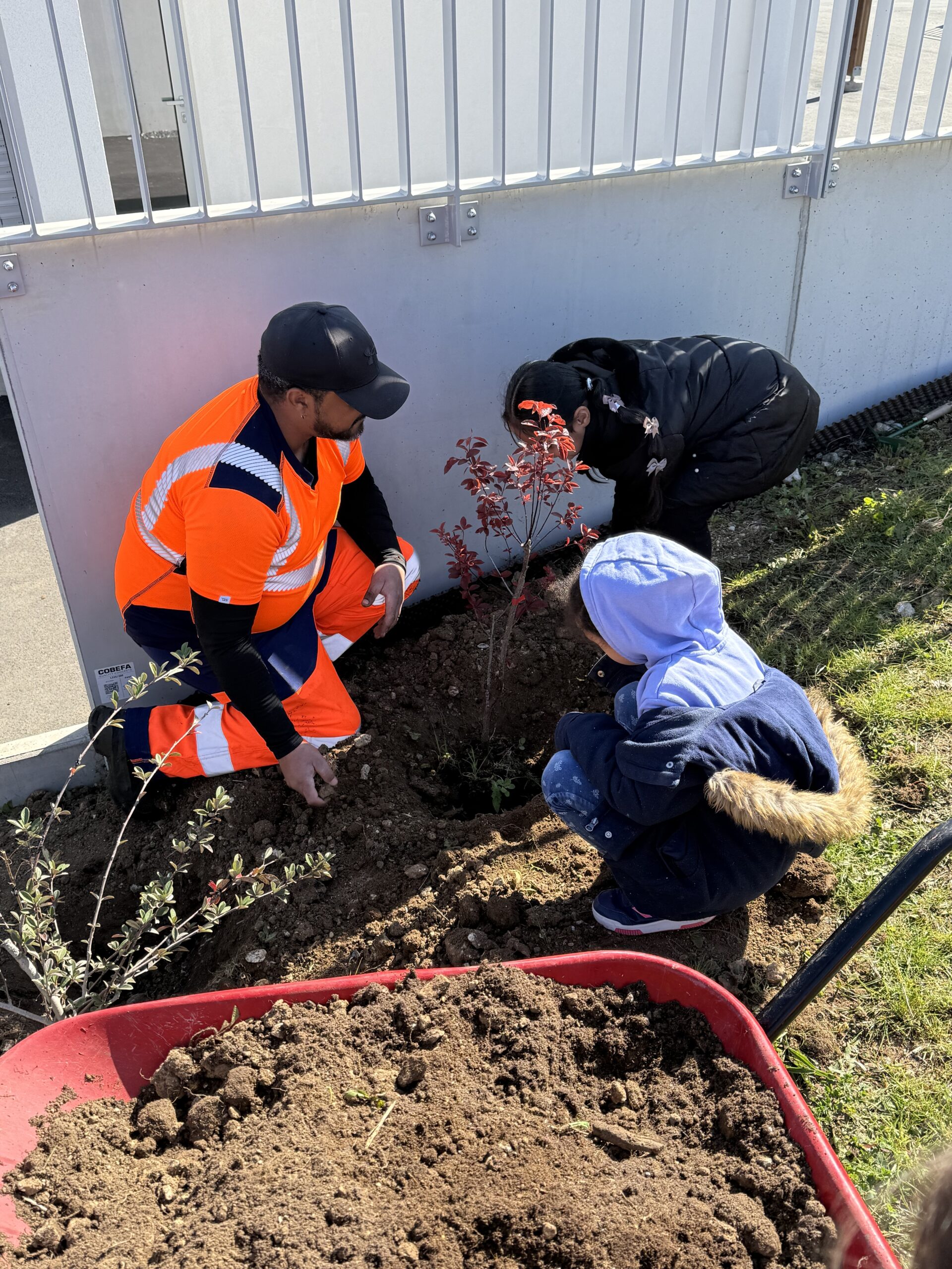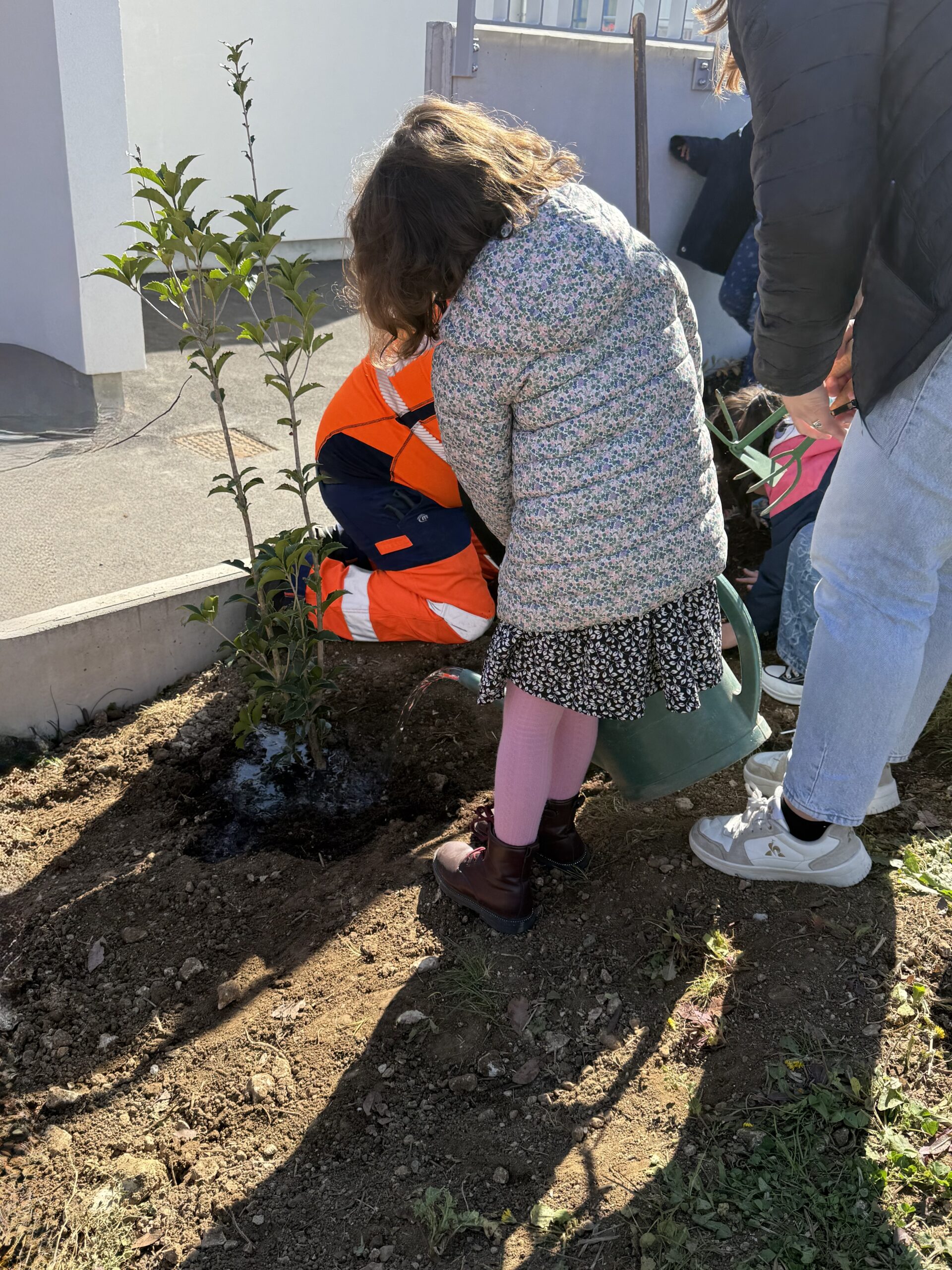 À cette occasion, une classe de grande section de maternelle et de CP a été associée à l’initiative. Encadrés par leurs enseignants et accompagnés des services techniques municipaux, les enfants ont participé activement à la mise en terre de 12 plants de différentes espèces, découvrant ainsi les gestes essentiels liés à la nature et à sa préservation.