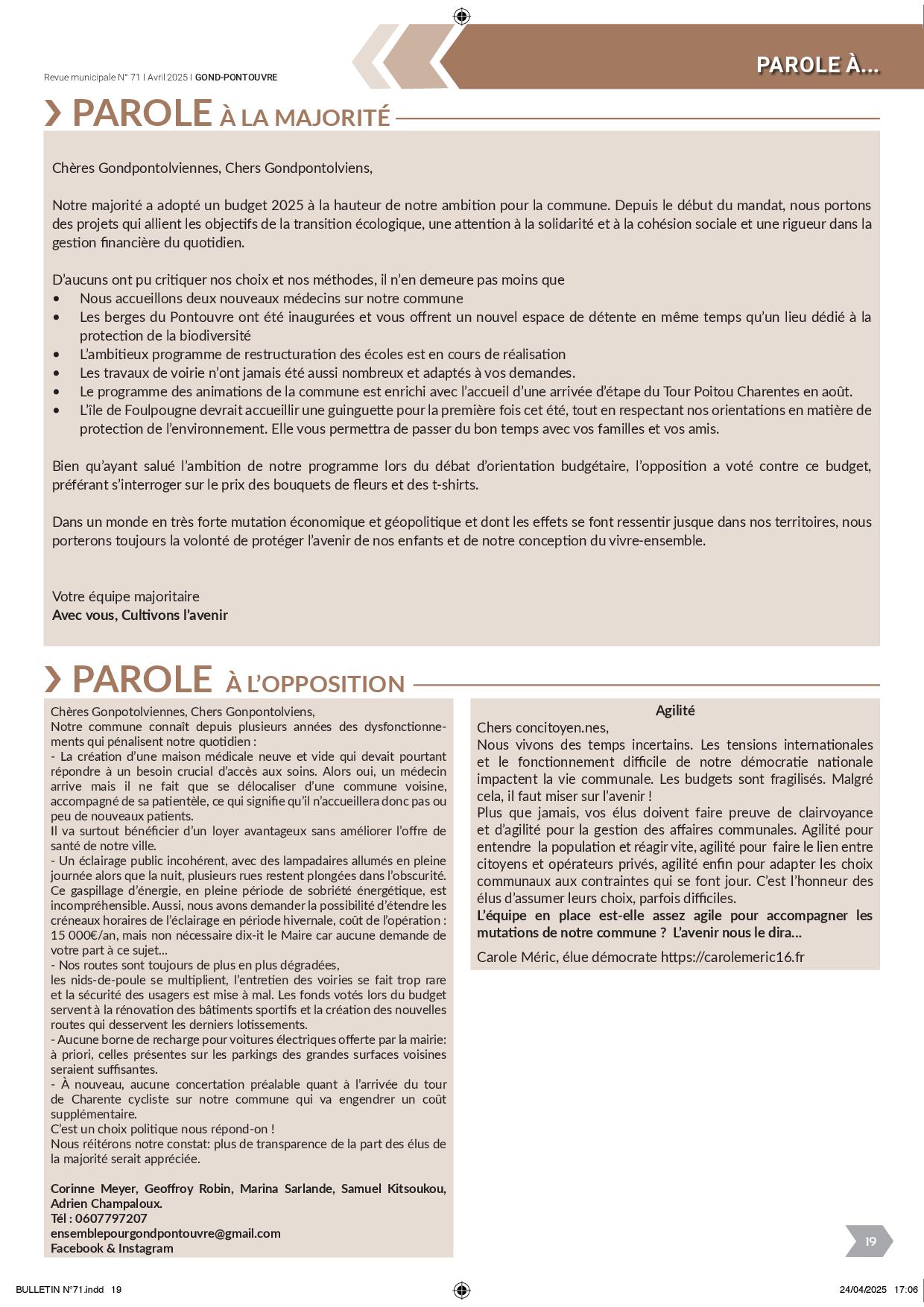 Retrouver la section Parole à de votre magazine municipal